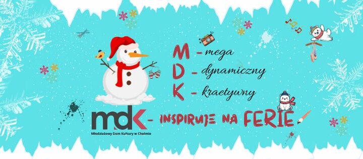 Młodzieżowy Dom Kultury w Chełmie serdecznie zaprasza dzieci i młodzież do udziału w tegorocznych feriach zimowych! Przygotowaliśmy bogaty i różnorodny program, dzięki któremu każdy znajdzie coś dla siebie – od zajęć artystycznych i kreatywnych,...