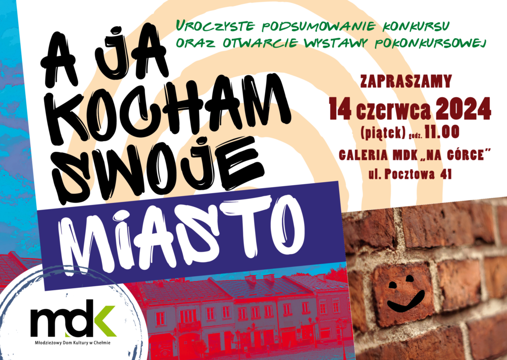Podsumowanie konkursu „A ja kocham swoje miasto” / FOTO przez Joanna Sadowska · 5 czerwca, 2024 Ponad 130 prac wpłynęło na tegoroczną edycję konkursu „A ja kocham swoje miasto”. Podsumowanie konkursu, ogłoszenie wyników oraz wręczenie nagród nastąpi 14 czerwca o godz. 11 w MDK przy ul. Pocztowej 41. WYNIKI GALERIA