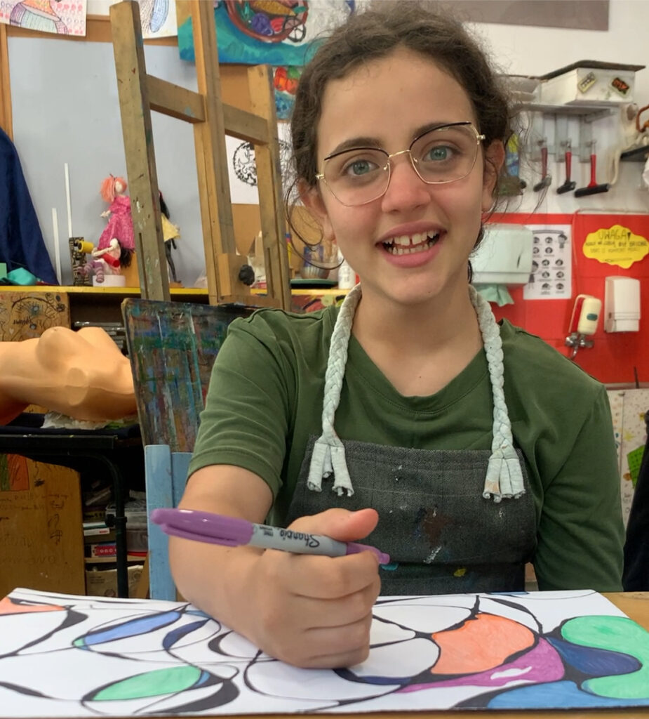 Lili Daoudi na co dzień swój talent plastyczny rozwija w Pracowni Modna Sztuka prowadzonej przez Justynę Malicką-Sławińską. Jednak Lili jest utalentowana nie tylko plastycznie. W MDK uczęszcza także na zajęcia muzyczne, wokalne i teatralne. Serdecznie gratulujemy Lili udziału w zagranicznej wystawie i życzymy dalszych sukcesów na wszystkich artystycznych polach.