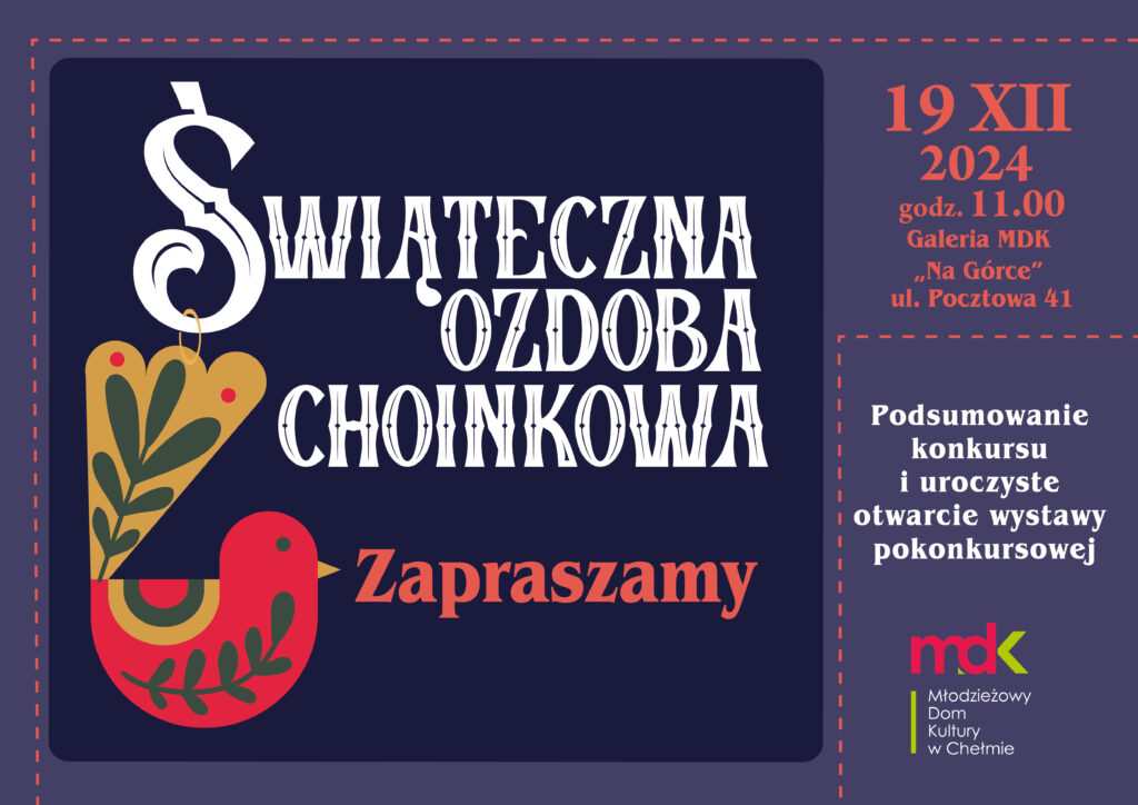 Podsumowanie konkursu, wręczenie nagród i otwarcie wystawy pokonkursowej zaplanowane jest na 19 grudnia, godz. 11.00, MDK, ul. Pocztowa 41. Zapraszamy!