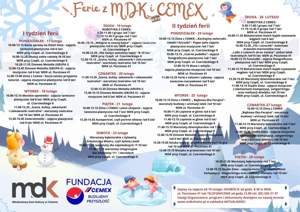Przedstawiamy Wam program tegorocznych ferii zimowych z Młodzieżowym Domem Kultury w